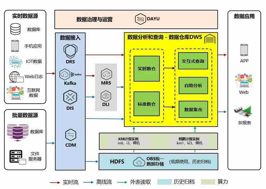 交通银行数据仓库(DWS)采用代理管理网鲲泰R722服务器作为数据底座,,,采用MPP(Massive Parallel Processing)架构,,,,支持行存储与列存储,,,,提供PB(Petabyte,,,,2的50次方字节)级别数据量的处理能力。。。